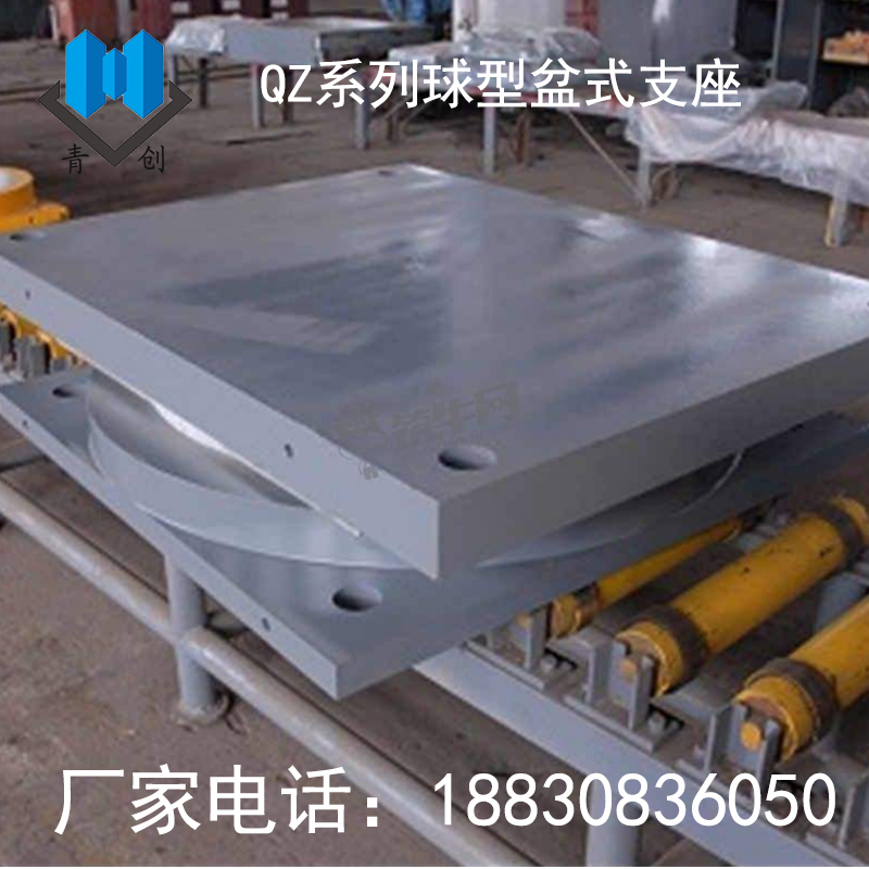 QZ橡膠支座主要由上支座板、下支座板、球形板、聚四氟乙烯滑板(即平面四氟板、球面四氟板)及橡膠擋圈組成一種盆式橡膠支座產(chǎn)品。它只是將盆式支座中的橡膠板改為球面四氟板;中間鋼板及底盆亦相應地改成球面,減小了摩擦系數(shù)。其位移由上支座板與平面四氟板之間的滑動來實現(xiàn)。在上支座板上設置導向槽或?qū)颦h(huán)來約束支座的單向或多向位移,可以制成球形單向活動支座和固定支座。通過球形板和球面四氟板之間的滑動來滿足支座轉(zhuǎn)角的需要。